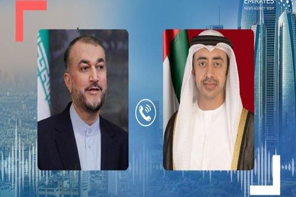 Iranian Foreign Minister Hossein Amir-Abdollahian discussed the latest developments in bilateral and international relations with sheikh Abdullah bin Zayed bin Sultan Al Nahyan, the Minister of Foreign Affairs and International Cooperation of the United Arab Emirates.