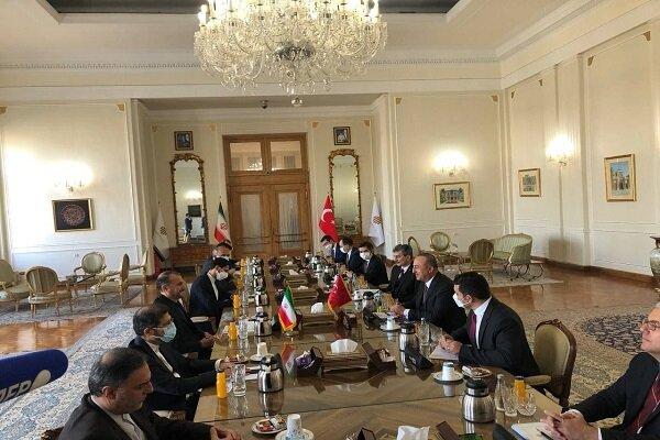 Welcomed by Hossein Amir-Abdollahian, the Turkish Foreign Minister held talks with his Iranian counterpart at the building of the Iranian Foreign Ministry.