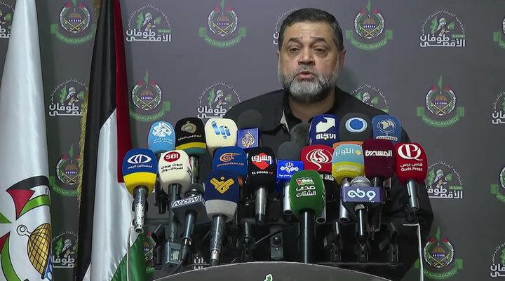 During his press conference, the senior Hamas official praised the position of Yemen’s Ansarullah Resistance movement “in their support for their brothers in Gaza, and the continuation of a global mass movement in solidarity with Gaza.”