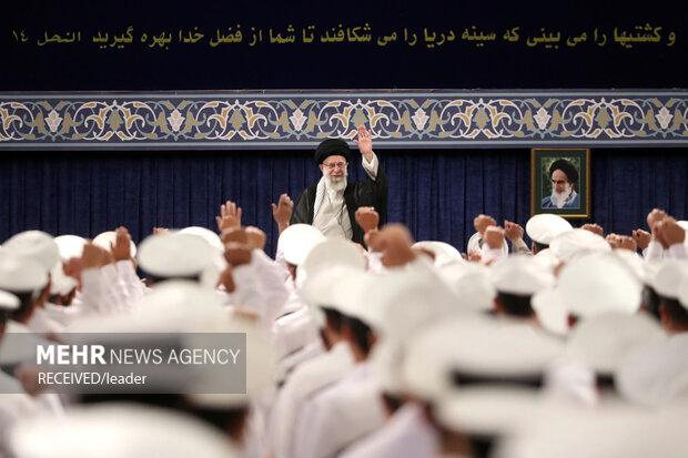Leader of the Islamic Revolution Ayatollah Seyyed Ali Khamenei received the commander, crew, and families of the 86th Naval flotilla of the Islamic Republic of Iran Army on Sunday morning.