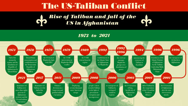 TEHRAN, Jul. 18 (MNA) – The below infographic shows the rise of the Taliban and the fall of the US in Afghanistan.