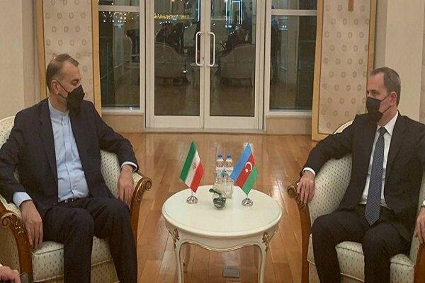 Amir-Abdollahian who accompanies Iranian President Ebrahim Raeisi in his visit to Turkmenistan met and held talks with his Azeri counterpart Jeyhun Bayramov in Ashgabat.