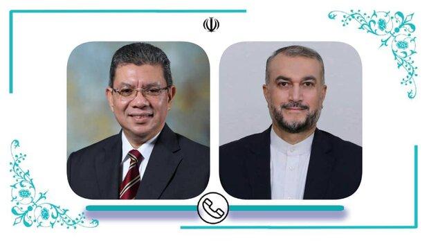 Hossein Amir-Abdollahian and his Malaysian counterpart Saifuddin Abdullah discussed the Palestinian issue, regional and international developments, as well as bilateral issues by phone on Wednesday afternoon.