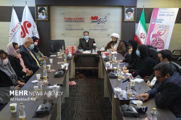 The unveiling ceremony and introduction of Spanish translation of the book entitled “The Ladder to the World” (“La Escalera del Mundo”) written by Mohammad Reza Sarshar was held at the venue of Mehr News Agency (MNA) in the presence of Ambassador of Cuba to Tehran Alexis Bandrich Vega, Ambassador of Bolivia to Tehran Romina Guadalupe Perez Ramos, Hojjatoleslam Mohammad Amin Naji Director of Fanoos Daryaee International Publications, Ali-Akbar Shirvani Manager of Sureh-Mehr Publication, Farhad Fallah Production Manager of Fanoos Daryaee Publication, Tahereh Badakhsh Editor-in-Chief of Spanish Magazine entitled “First Step” and Literary Editor of Spanish Translation of "Ladder of the World", Mohammad Reza Sarshar Author of the book, Saeedeh Hosseinjani Head of Translation Center of Art Bureau and Ms. Mohammadi Designer and Graphic Designer of the magnificent book.