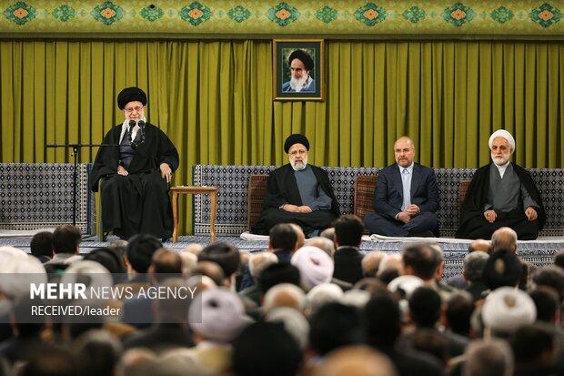 The Leader once again reiterated that all countries are duty-bound to cut off political, propaganda, and weapons aid to Israel and stop sending consumer goods to the regime, saying, "Nations have an obligation to exert pressure on the governments to fulfill this big duty."