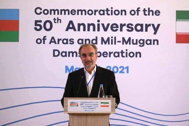 Speaking at a ceremony to celebrate the 50th anniversary of water cooperation between Iran and Azerbaijan on the joint operation of Aras and Mill-Moghan dams, he said: “Undoubtedly, relying on the experiences of experts and specialists of the two countries in the field of technical cooperation between Iran and Azerbaijan, more can be done regarding dams and hydropower plants built on Aras River”.