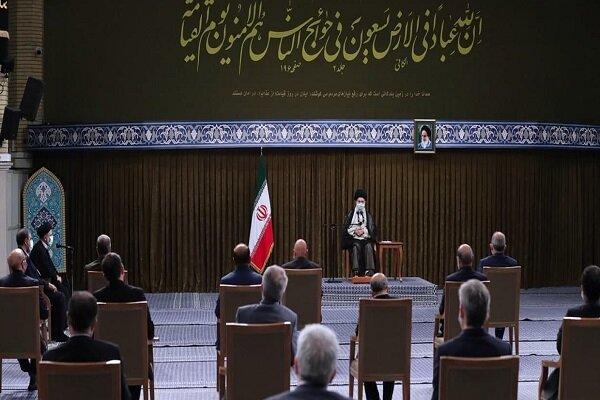 In their first meeting after almost all of his proposed ministers were approved by the Parliament, Iranian President Ebrahim Raeisi and his Cabinet met with the Leader of the Islamic Revolution Ayatollah Khamenei on Saturday at Imam Khomeini Hussainia.