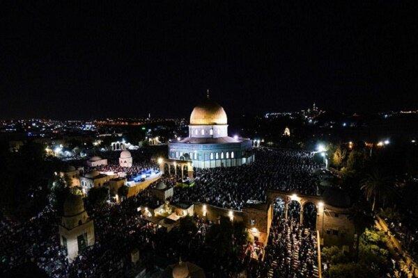 At least 250,000 Palestinian worshipers congregated at the mosque in the Old City of occupied al-Quds to perform prayers on Wednesday night, defying Israeli threats against such gatherings, Palestinian sources reported, according to Press TV.