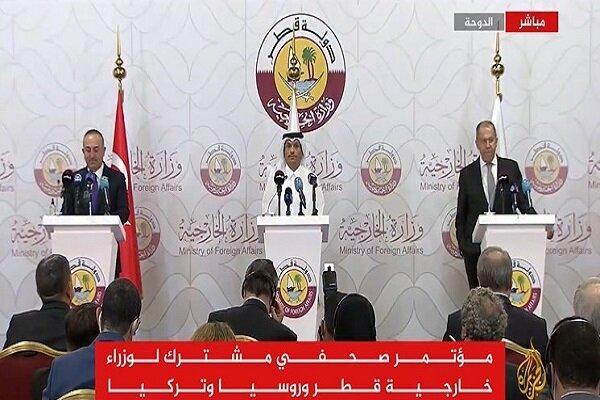 Qatari sources reported on Thursday that Qatari Foreign Minister Mohammed bin Abdulrahman al-Thani, Russian Foreign Minister Sergey Lavrov and Turkish Foreign Minister Mevlüt Cavusoglu attended a joint press conference in Qatari capital Doha.