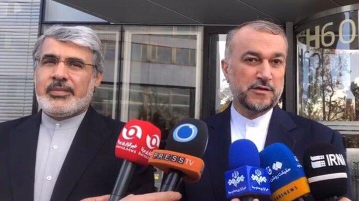Reacting to the concurrent visit of Israeli foreign minister Eli Cohen to Geneva, Amir-Abdollahian said that the 51-year-old diplomat, accompanied by family members of some Israeli captives held in Gaza, has hastily come to Switzerland to play the victim.