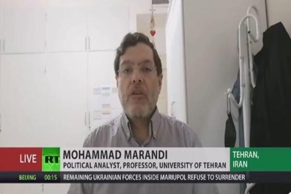 In an interview with Russia Today, Mohammad Marandi spoke about Western sanctions against Russia following the Ukraine conflict. Referring to the West's sanctions on Russia, Marandi said, "They should have known from the experience from Iran that sanctions basically target women and children and it is not going to make the kind of change that Europeans and Americans are looking for."