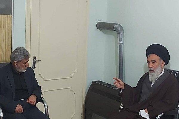 During the meeting, Ayatollah Hossein Khorasani pointed to the salient and significant achievements of IRGC Quds Force in countries such as Syria, Lebanon, Iraq, Yemen and other territories that are part of the Axis of Resistance and called these achievements and progress as a sign of power and authority of the Islamic Establishment of Iran under the wise leadership of the Islamic Revolution Leader Ayatollah Seyyed Ali Khamenei.