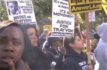 "Hundreds of American people descended on the steps of Los Angeles City Hall on Monday evening to denounce the slaying last month of 17-year-old Trayvon Martin and demand that an arrest be made in the highly charged Florida case"South Los Angeles resident Pam Brown, 54, took part in the procession with her daughter and two grandchildren, one of whom held a sign that said "Fight for Justice." "What happened wasn't right," Brown said. Iña Martinez, 51, who traveled nearly 30 miles from Glendora to attend the event, said Martin's slaying was all about racism and injustice. "I want to see justice," she said. (From L.A Times)