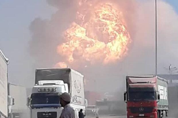 According to Latifi, a lorry carrying fuel that had caught fire started the fire at around 12:00 Tehran local time after spreading it to few other trucks parked in Dogharoon.