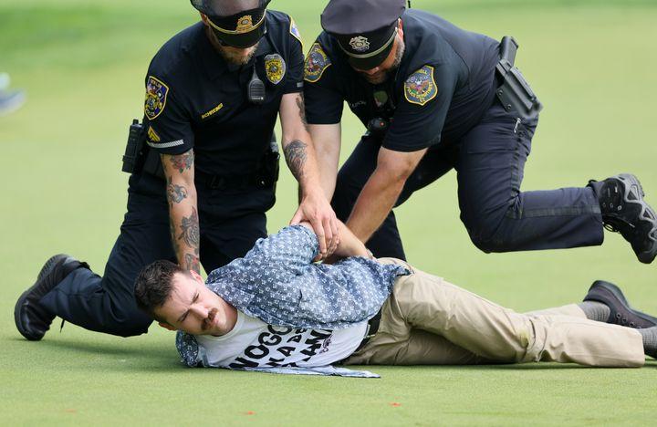 Six Climate Protesters Run Onto 18th Green And Spray Powder, Delaying Finish Of PGA Tour Event