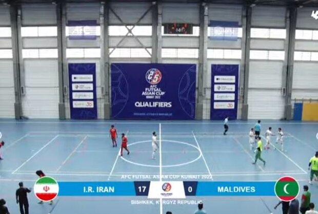 Iran's national men's futsal team trounced Maldives 17-0 in the first match on Sunday.