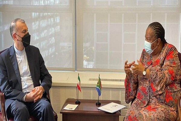 FM Amir-Abdollahain sent a message to his South African counterpart Naledi Pandor on Tuesday.