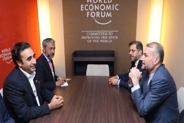 Iranian Foreign Minister Hossein Amir-Abdollahian on Thursday met with his Pakistani counterpart Bilawal Bhutto Zardari on the sidelines of the World Economic Forum at Davos, discussing bilateral, regional and international issues.