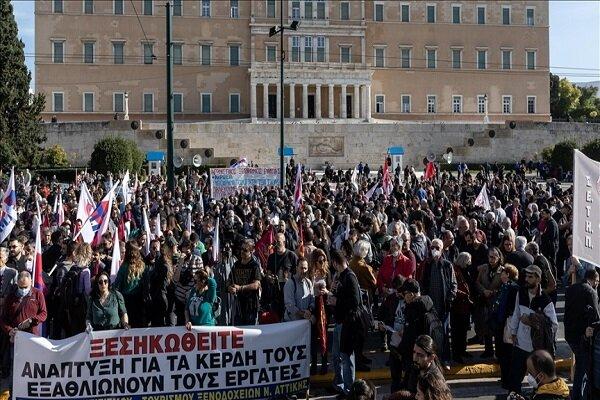 Demonstrators gathered in front of the parliament building, responding to the call of The All-Workers Militant Front (PAME), a trade union affiliated with the Communist Party of Greece (KKE), to protest.