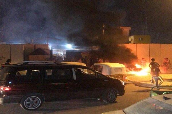 Iraqi protestors gathered outside the Iranian Consulate in Karbala on Sunday evening, burning tires and setting barricades ablaze, according to local media reports.