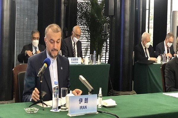 Iranian Foreign Minister Hossein Amir-Abdollahian addressed the third foreign ministers meeting of Afghanistan's neighboring countries which is taking place in Tunxi, in China on March 30-31 on Thurday.