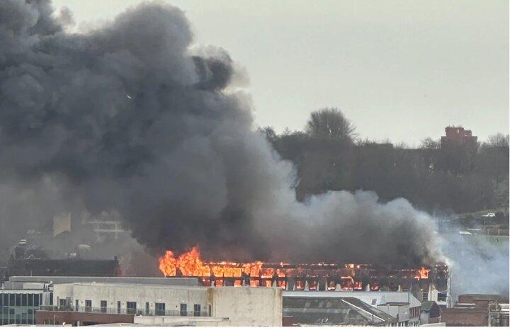 Huge plumes of smoke could be seen across the city, including over Goodison Park during Everton's FA Cup tie against Luton Town, as well as from across the River Mersey in Wirral.