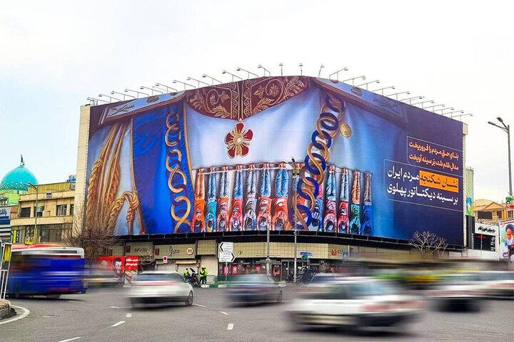 According to the public relations department of the Islamic Development Organization (IDO), on the occasion of the 45th anniversary of the victory of the 1979 Islamic Revolution, the latest mural in Tehran's iconic Revolution roundabout with an image of "the sign of the torture of the Iranian people on the chest of the Pahlavi dictator" was released to the public on Monday.