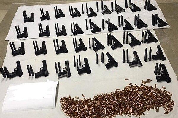 The statement said 34 handguns with ammunition were seized by the Quds headquarters forces in the Saravan border region.