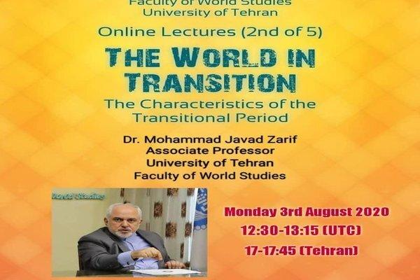 Zarif is to deliver the second of five online talks titled 'Characteristics of Transitional Period' at Faculty of World Studies, University of Tehran on Monday, August 3rd, 12:30-13:15 UTC.