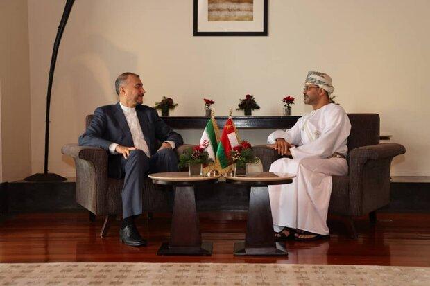 Iranian Foreign Minister Hossein Amir-Abdollahian on Wednesday met with his Omani counterpart Sayyid Badr Albusaidi in Muscat Wednesday to discuss bilateral, regional and international issues of mutual interest.