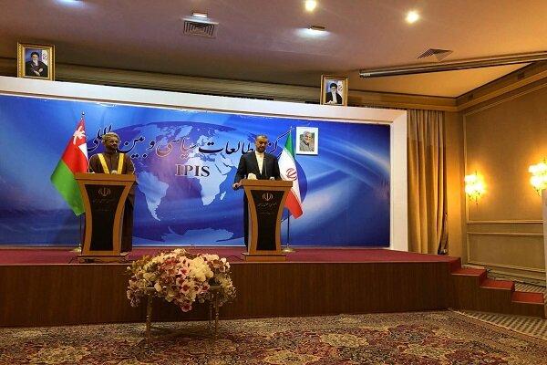 The Iranian foreign minister Hossein Amir-Abdollahian and his Omani counterpart Sayyid Badr Albusaidi held a joint press conference after their meeting at the foreign ministry compound in Tehran on Monday.