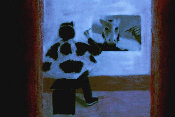 It is made with pastel and oil paint techniques on paper combined with the rotoscopic technique.