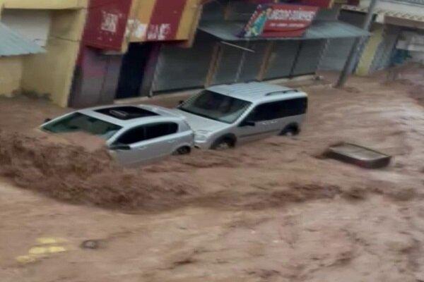 Television footage from Sanliurfa showed flood waters surging along a street and sweeping away cars.