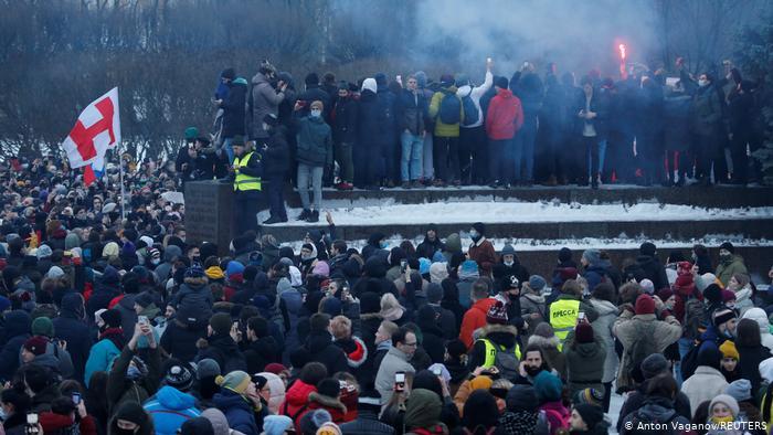در شامگاه روز شنبه در مسکو، شمار زیادی از معترضان در برابر بازداشتگاهی که الکسی ناوالنی در آن زندانی است تجمع کردند که به دستگیری شمار زیادی منجر شد.
