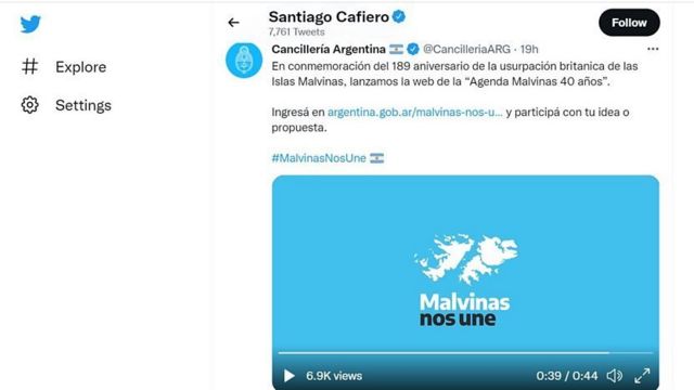 آقای کافیرو در توییتر به این کارزار اشاره کرد و آن را "باز و دولتی" خواند و گفت که هدفش "زنده کردن خاطرات و ادعای مالکیت" و همچنین "یادآوری قهرمانانمان" است - اشارهای به سربازان آرژانتینی که در جان خود را در جنگ ۱۹۸۲ از دست دادند.