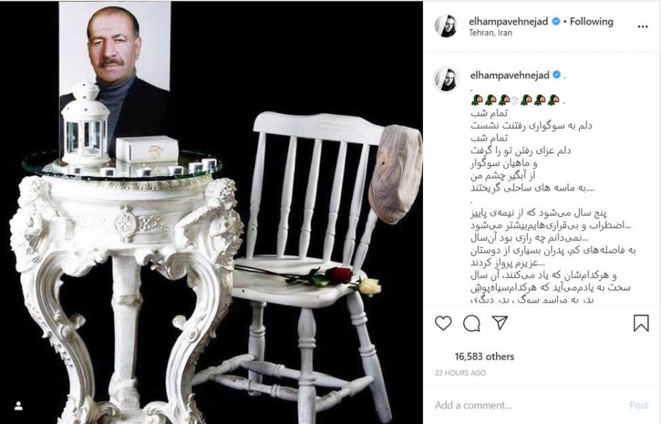 دلتنگی الهام پاوه نژاد برای پدرش/ عکس