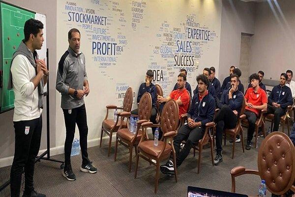 به گزارش خبرگزاری مهر و به نقل از سایت فدراسیون فوتبال، در این جلسه که با حضور کارلوس کیروش و دستیاران او برگزار شد، کادر فنی تیم ملی، وضعیت حریف فردای ایران را برای بازیکنان تشریح کردند.