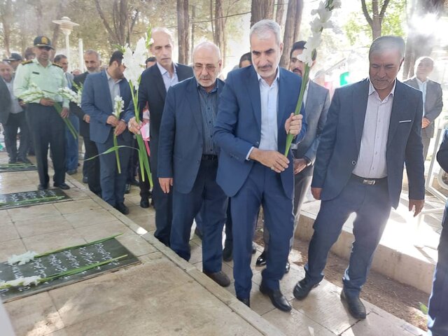 یوسف نوری، وزیر آموزش و پرورش، امروز(پنجشنبه،۲۶ خرداد) در بیست و پنجمین سفر استانی هیئت دولت پس از ورود به شاهینشهر با حضور در گلستان شهدا، گل افشانی و غبارروبی از قبور شهدای هشت سال دفاع مقدس، شهدای امنیت و سلامت این شهرستان به مقام شامخ آنها ادای احترام و با آرمانهای شهدا تجدید میثاق کرد.