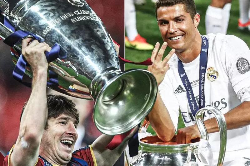 رونالدو با زدن ۱۴۱ گل در لیگ قهرمانان اروپا، آقای گل تاریخ این رقابت ها است. مسی با زدن ۱۲۹ گل در این تورنمنت در رده دوم جای می گیرد. کریستیانو رونالدو پنج بار قهرمان رقابت های لیگ قهرمانان اروپا شده است اما لیونل مسی چهار بار قهرمان این تورنمنت شده است. رونالدو یک بار با منچستر یونایتد و چهار بار با رئال مادرید قهرمان لیگ قهرمانان اروپا شد اما تمام چهار قهرمانی مسی در لیگ قهرمانان اروپا به همراه بارسلونا بود.