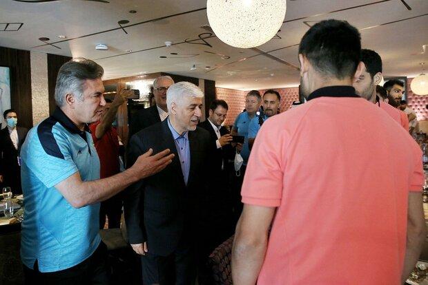 وی با اشاره به حمایت دولت از تیم ملی گفت: هیات دولت همیشه پیگیر تیم ملی است و در راس دولت جناب آقای رییسجمهوری پیگیر تیم ملی هستند. ایشان نکاتی را دستور دادند که ما باید آنها را دنبال کنیم.