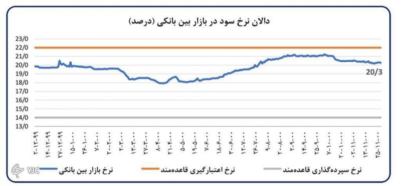 بررسی روند تغییرات نرخ بازار بینبانکی نشان دهنده کاهش این نرخ در بهمن در قیاس با ماههای گذشته و تثبیت آن در محدوده ۲۰.۳ درصد بوده است.