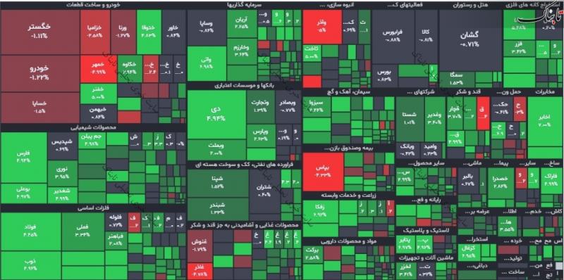 تعداد نمادهای در صف خرید: ۱۰۱ نماد | ارزش صفهای خرید: ۴۱۳ میلیارد تومان ۳ نماد با برترین تقاضا در بورس: کپشیر، فارس، ثفارس. ۳ نماد با بیشترین افزایش قیمت در بورس: وآتی، وپترو، اخابر. میزان ورود پول حقیقی: ۹۷ میلیارد تومان