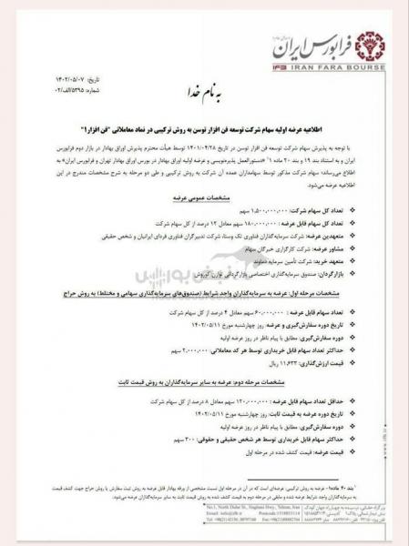 نکات مهم شرکت توسعه فن افزار توسن با نماد فن افزار