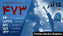 ارگان خبری مجموعه فعالان حقوق بشر در ایران اعلام کرد از ۲۶ شهریور تا چهاردهم آذر ۴۷۳ نفر در اعتراضات ایران جان خود را از دست دادهاند که ۶۴ نفر از آنها کمتر از ۱۸ سال سن داشتند.