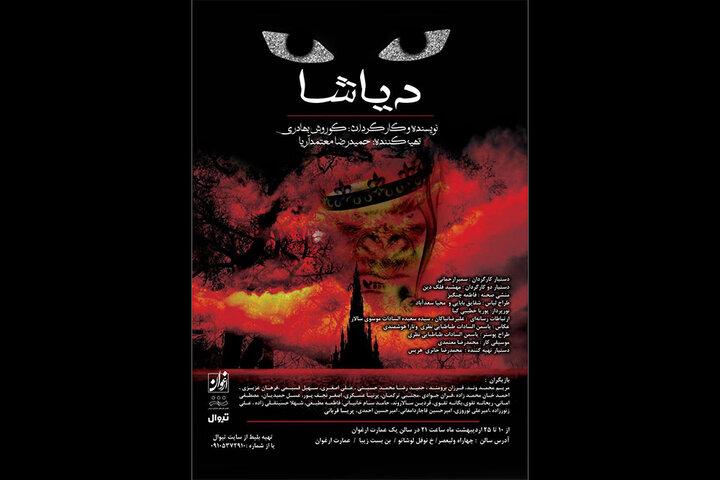 به گزارش خبرگزاری مهر به نقل از مشاور رسانهای، «دیاشا» به نویسندگی و کارگردانی کوروش بهادری و همچنین تهیه کنندگی حمیدرضا معتمدآریا از روز یکشنبه دهم اردیبهشت ساعت ۲۱ در عمارت ارغوان روی صحنه میرود.