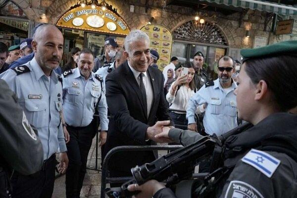 شامگاه یکشنبه «یائیر لاپید» به همراه گروهی از مقامات صهیونیست از منطقه باب العمود در قدس اشغالی دیدن کرد.