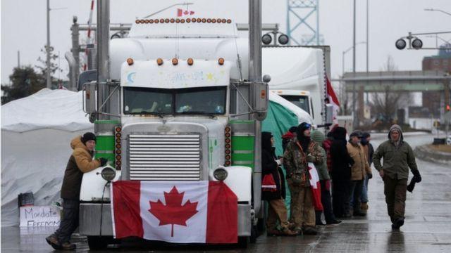 کامیونداران کانادایی که چند هفته پیش اعتراضات خود را به محدودیت عبور و مرور مرزی در ماه گذشته آغاز کردهاند به اجباری شدن واکسن برای عبور از مرز آمریکا و کانادا اعتراض دارند.