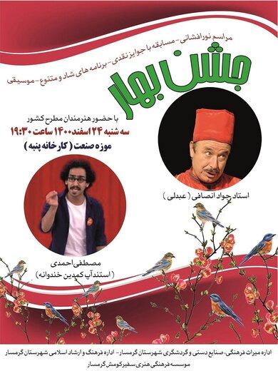 رئیس اداره میراثفرهنگی، گردشگری و صنایعدستی شهرستان گرمسار گفت: «این برنامه شاد با حضور هنرمندان مطرح کشوری و با اجرای مراسم نورافشانی، مسابقههای شاد و متنوع، موسیقی محلی، مراسم آئینی سنتی چهارشنبه آخر سال و ... همراه است.»