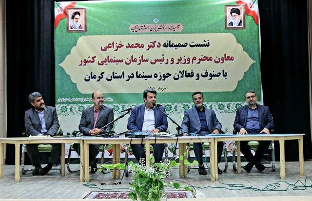 "محمد خزاعی" شامگاه چهارشنبه هشتم تیرماه در نشست صمیمانه با صنوف و فعالان حوزه سینما در استان کرمان با اشاره به اینکه نشستن در دفاتر و زیر باد کولر قطعا ما را به سمت عدالت فرهنگی سوق نخواهد داد، اظهار کرد: حرکت جهادی و حضور در میدان باعث می شود ضعف ها و مشکلات در این حوزه مشخص شود تا بتوانیم برنامه های عملیاتی مهمی را برای شهرستان ها و استان ها داشته باشیم.