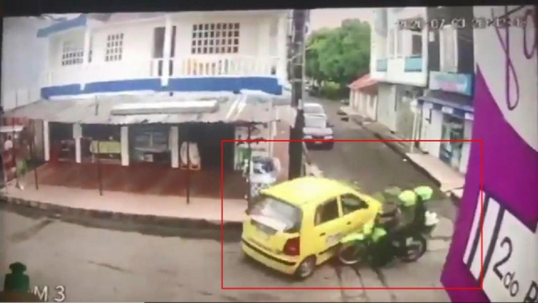 در ابتدای این ویدئو یک خودروی زرد رنگ در حال گردش به سمت چپ دیده میشود. ناگهان یک موتورسیکلت از راه رسیده و به علت خارج شدن کنترل آن از دست راننده با این خودرو برخورد میکند. این ویدئو نشان میدهد که شدت این تصادف به حدی است که موتورسوار و مسافر به هوا پرتاب میشوند. لحظاتی بعد موتورسیکلت آنها بر اثر برخورد شدید با زمین و اصطکاک بوجود آمده غرق شعلههای آتش میشود. در این حادثه راننده خودرو به همراه موتورسوار و مسافرش جان سالم بدر بردند.